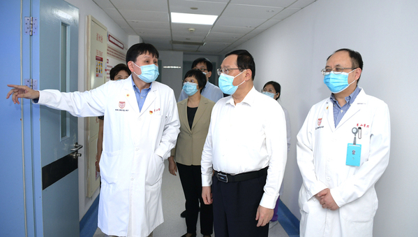 以复旦大学附属华山医院为主体建设的市传染病与生物安全应急响应重点实验室,坚持以临床需求为导向,聚焦应急响应科技攻关储备和创新成果临床转化,全面提升传染病防控能力。李强认真听取实验室主任张文宏关于实验室建设运行情况的介绍,深入了解新冠肺炎有关快速检测、精准救治、疫苗接种等科研情况。李强指出,要立足专业优势,瞄准传染病防控重大战略需求,把疫情防控科研攻关作为重大任务,加强病原学和流行病学研究,加强科学知识宣传普及,加快构筑高水平的传染病防控科技“防火墙”,为超大城市筑牢疫情防控严密防线、提升公共卫生应急处置能力贡献更大力量。