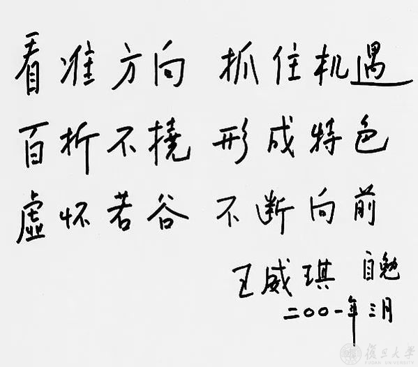 “看准方向,抓住机遇,百折不挠,形成特色,虚怀若谷,不断向前”。