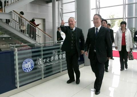 新闻中心讯 2009年12月3日上午,全国人大常委会副委员长、中国农工民主党中央委员会主席、中国工程院院士、国家科技重大专项重大新药创制专项总师、校友桑国卫在校党委书记秦绍德、副校长许征、副校长金力等陪同下视察我校张江校区药学院新址,药学院毕业的校友侯惠民院士、李大鹏院士,药学院院长朱依谆、党委书记陆伟跃、校科技处有关领导、药学院教师代表等参加接见。