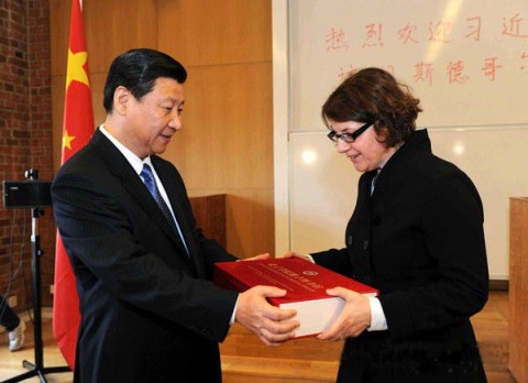 为支持孔子学院的汉语教学工作,习近平副主席向斯德哥尔摩大学赠送了一套中国文化体验中心设备以及一批电子图书。诺德斯多姆校长代表全校师生向习副主席专程来到学校并赠送礼物致以衷心感谢。她表示斯德哥尔摩大学以汉学研究及与中国的合作历史悠久而自豪,而孔子学院则是经济全球化时代跨文化对话交流的重要平台,感谢中国政府在这方面提供的支持和帮助。