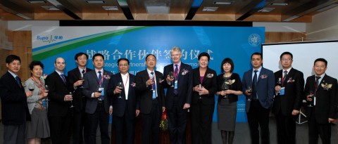新闻中心讯 5月7日,复旦医院管理有限公司及上海泰福健康管理咨询有限公司、中山医院、华东医院、妇产科医院和眼耳鼻喉科医院分别与世界著名健康保险和医疗保健跨国公司英国保柏(Bupa)集团签署医院“管理质量服务”协议,此标志着中英两国政府签署的“中英卫生创新伙伴”计划已进入实质性实施阶段,附属医院特需医疗服务及结算流程将与国际商业保险机构接轨。