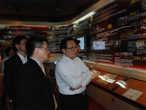 随后,华建敏一行视察了华山医院百年历史的原点——修造于上世纪初的红十字会老楼、华山花园、门急诊楼等,并在红会老楼的院史陈列室里,欣然提笔为华山医院写下“百年丰功,有口皆碑”八个大字。