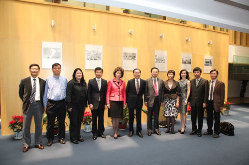 访问期间,赵锡成博士、赵小兰女士一行还参观了管理学院,与十多位来自复旦各院系和部处的专家、学者进行了座谈。座谈会由管理学院院长陆雄文主持,副校长许征致欢迎词。宾主双方就上海航运中心的建设和发展进行了充分的交流。