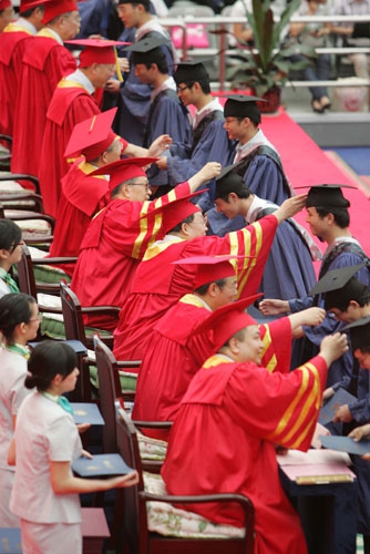 曾经以为这一天很遥远,曾经希望这一天快点到来。但这一天真的到时,心头突然涌上千言万语,心中充满着不舍和留恋。“此时此刻,我最想说的词是感谢,最深刻的感悟是成长,最深沉的感情是眷恋,最美好的希望是未来,”毕业生代表、计算机科学技术学院博士生马欢飞在发言中深情地说。九年前,身有残疾的他在大学的门外徘徊,是复旦老师的一句话打消了他的顾虑,将他领进复旦的大门。九年来,母校的一花一草,一时一景都早已深深地镌刻在内心深处。不能忘记课堂上老师的教诲与辅导员的关怀,不能忘记初次写论文时的拙劣和导师的耐心指点,不能忘记无数个不眠之夜里的奋斗与师兄弟们的陪伴。“从明天起,我们将离开母校,无论我们身在何处,从事怎样的工作,我们都有一个共同的名字:复旦人,我们将把个人的理想与国家的命运紧紧地联系在一起,为母校的发展和祖国的繁荣而贡献自己的力量。”