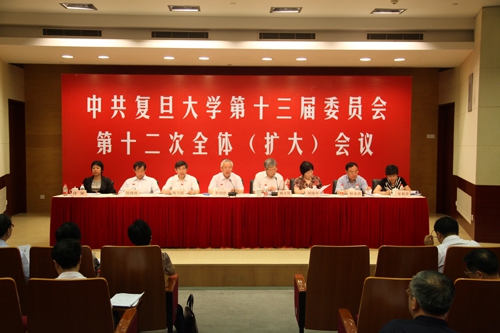 新闻中心讯 中共复旦大学第十三届委员会第十二次全体(扩大)会议7月17—18日在光华楼举行。会议的主题是:贯彻全国教育工作会议精神,深入研究学校“十二五”面临的发展形势、奋斗目标和重要任务,探讨改善学校学术管理和行政管理的措施,进一步发挥学术生产力,加快创建世界一流大学的步伐。校党委常委会主持会议。校党委书记秦绍德,党委常委、校长杨玉良分别在会上作重要讲话。