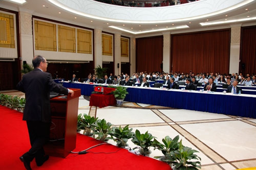 复旦大学校长杨玉良在报告中提出,中国建设世界一流大学必须突破“后发劣势”,而要实现这种突破必须紧紧围绕如何世界知识体系的中心和前沿、如何适应中国正在形成的世界性大国的地位、责任和影响以及如何体现中华民族伟大复兴的深刻要求三各方面,走出一条中国特色的一流大学建设的新路。