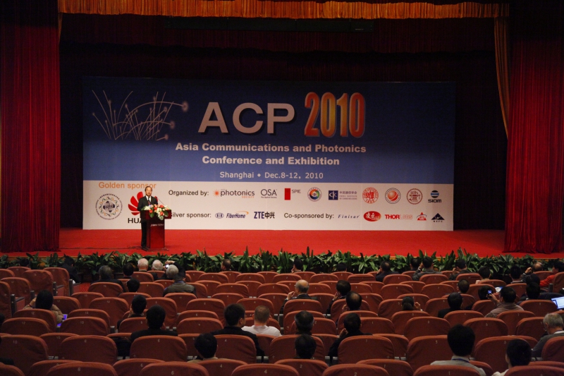 ACP2010由复旦大学和浦东新区光电协会联合承办。来自全球的光电光通信专家及产业界人士700余人参加了本次盛会,在为期三天的会议中,专家们针对光纤传输、器件、光网络工程、生物光子学等光电和光通信中最先进和最有前景的领域进行了深入的讨论。ACP2010紧随世博会的召开,集合了国内外知名专家学者,政府官员以及知名企业负责人一起探讨后世博时代上海市产业结构的调整方向,以及为如何建设一个更好的上海献智献策。
