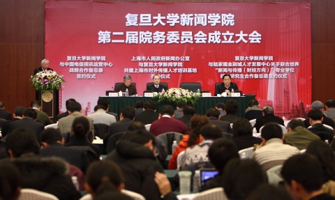 复旦大学新闻学院新一届院务委员由中央新闻单位驻沪机构负责人、上海各主要新闻单位负责人,以及一些新媒体负责人、业界著名人士担任。