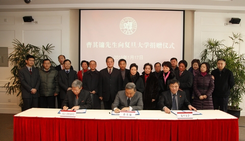 1月17日,曹其镛先生向复旦大学捐赠仪式在复旦大学光华楼东辅楼101报告厅举行。香港永新企业有限公司副董事长曹其镛先生向复旦大学捐资2000万人民币,用于建立“复旦大学中日青年交流中心”。