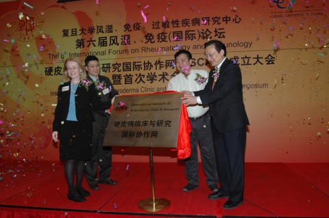 上海市卫生局徐建光局长、复旦大学金力副校长、美国得克萨斯大学休斯顿健康科学中心医学院Maureen D.Mayes教授等共同为inSCAR的成立揭幕。中国工程院吴以岭院士、西班牙inSCAR执委Javier Martin教授发来了贺信。徐建光局长、复旦大学常务副校长王卫平教授和Mayes教授发表了热情洋溢的讲话。