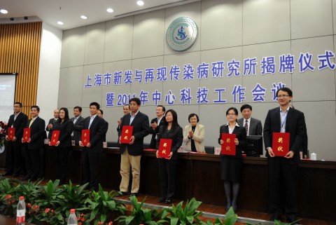 上海市卫生局局长徐建光、上海申康医院发展中心主任陈建平、复旦大学副校长桂永浩、中国疾病预防控制中心病毒病研究所所长李德新、上海市科委领导刘勤、公共卫生临床中心党委书记袁正宏教授等在揭牌仪式上发表热情洋溢的讲话,并向在科技工作方面做出突出贡献的公共卫生临床中心医务人员颁奖。公共卫生临床中心主任张志勇主持仪式。