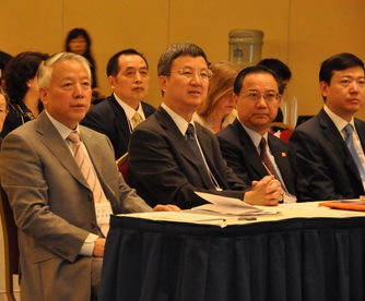 为感谢海外校友,许征副校长宣读并介绍了本届世联会表彰的由复旦大学校友会和在美各校友会推荐的资深和杰出校友,他们是冯静贞、张治道、吴英蕃、朱剑华、马克任、周谷声、郦永刚、王坚、孟晓犁、彭承、卞敬玲、尤伟顺以及华盛顿校友会,秦绍德、许征等向获奖人或代表颁发了奖杯。最后,许征宣布,经6日晚举行的复旦大学校友会会长(会长代表)会议讨论,复旦大学甘肃校友会获得复旦大学第十三届世界校友联谊会的承办权,2013年兰州再欢聚。