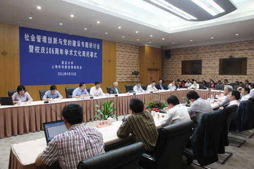 新闻中心讯 5月31日下午,“社会管理创新与党的建设”专题研讨会在逸夫科技楼多功能厅举行。研讨会由复旦大学与上海市决策咨询委员会联合举办,复旦大学党委书记秦绍德、复旦大学党委副书记陈立民、上海市决策咨询委员会办公室副主任杜宗超出席会议。