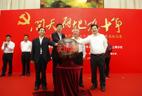 新闻中心讯 由市委宣传部、市教卫党委和新华社上海分社共同主办、光大证券协办的“开天辟地九十年”大型图片展高校巡展,16日在复旦大学举行启动仪式。复旦大学党委书记秦绍德,市委宣传部副部长、市文明办主任马春雷和新华社上海分社社长慎海雄共同启动高校巡展。
