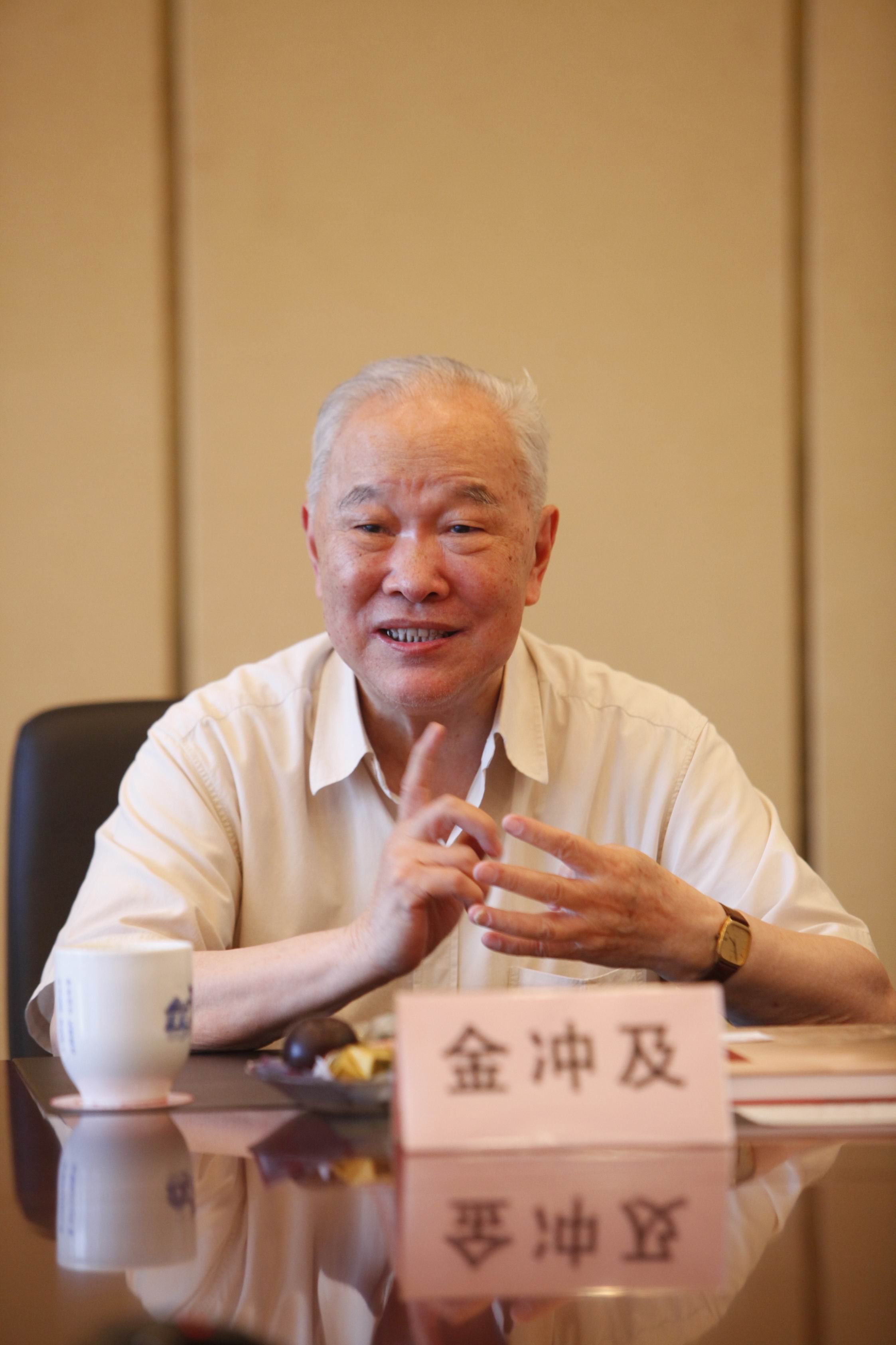 座谈会由校党委宣传部部长萧思健主持。会前,林尚立副校长代表学校向金冲及校友赠送了由档案馆制作的反映他在校期间的照片、成绩单等资料的《金冲及——复旦履痕》。金冲及校友也向学校回赠了由他撰写并亲笔题词的《二十世纪中国史纲》(四卷本)。