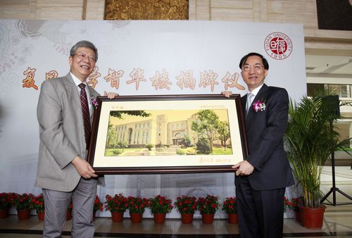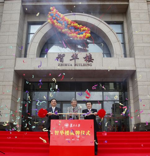 新闻中心讯  7月12日,我校在江湾校区举行“智华楼”揭牌仪式。校长杨玉良,复旦大学教育发展基金会董事、智华基金董事、香港恒基兆业副主席林高演等共同为“智华楼”揭牌。副校长许征出席仪式,仪式由副校长冯晓源主持。