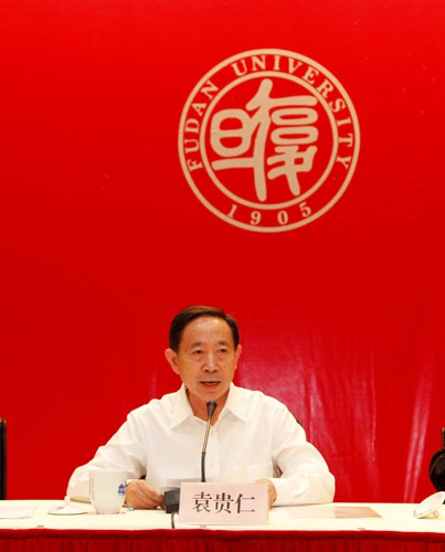 袁贵仁代表教育部党组坚决拥护党中央的决定。他指出,近10年来,复旦大学紧紧抓住高等教育大发展的历史机遇,坚持走内涵发展道路,取得了令人瞩目的成绩。这些成绩的取得,也凝聚了秦绍德同志大量的心血汗水和重要的贡献。秦绍德同志是复旦自己培养出来的党的高级领导干部,始终以社会主义政治家、教育家的标准要求自己;政治上成熟,党性观念和政治敏锐性强,政策理论水平高,热爱党的事业,熟悉高等教育规律,视野开阔,理念先进,办学经验丰富;大局意识强,坚持党的民主集中制和党委领导下的校长负责制,自觉维护领导班子团结,敢于担当,敢于负责,具有较强的组织领导和宏观驾驭能力;善于从全局和战略的高度研究问题,注重围绕学校的中心工作抓好党的建设和思想政治工作,在明确学校发展思路、促进改革发展、加快干部队伍建设、推进招生改革和通识教育、完善内部治理结构、维护学校稳定方面做了大量富有成效的工作;工作投入,恪尽职守,深入实际,联系群众,关爱学生,在学校师生中享有很高的威信,也赢得了高等教育战线的广泛尊重。
