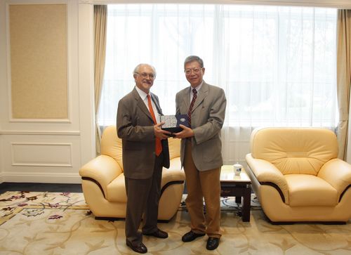 在学术报告会开始前,复旦大学校长杨玉良院士亲切会见了Molina教授。