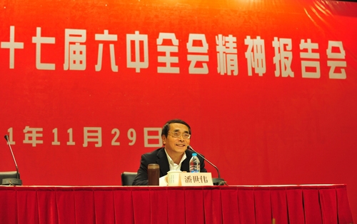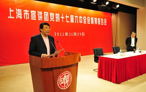新闻中心讯 11月29日下午,党的十七届六中全会精神报告会在我校光华楼东辅楼202报告厅举行,上海市宣讲团成员、市委宣传部副部长潘世伟应邀作专题报告。