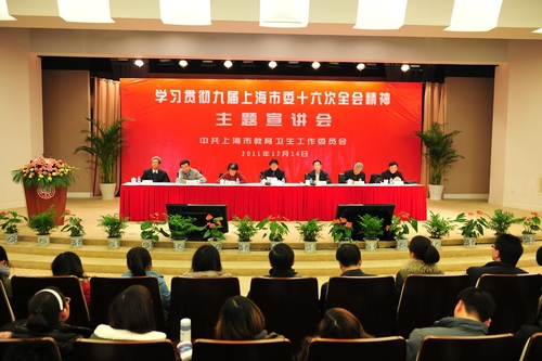 新闻中心讯 12月14日上午9点,市教卫系统学习贯彻九届市委十六次全会精神主题宣讲会在我校光华楼东辅楼202报告厅举行,我校校友、杨浦高级中学名誉校长、全国教书育人楷模于漪,我校附属华山医院教授、中国工程院院士顾玉东,我校复旦学院副院长、哲学学院教授王德峰,华东政法大学教授刘宪权,上海市闸北第八中学校长刘京海等5位专家分别围绕俞正声书记在十六次全会上提出的公正、包容、责任、诚信四个价值取向作精彩报告。