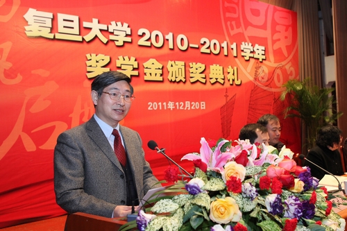 新闻中心讯 12月20日下午,“扬帆启航——复旦大学2010-2011学年奖学金颁奖典礼”在相辉堂举行。奖学金颁奖典礼是复旦大学一年一度的盛会,旨在褒奖品学兼优、全面发展的复旦学子,在全校营造一种鼓励勤奋、鼓励创新、鼓励攀登的文化,激励全校学生积极上进,不断超越。党委副书记陈立民、副校长冯晓源、对外联络与发展处处长张宏莲以及各国驻沪总领馆和设奖单位嘉宾等出席。各院系的九百余名中外获奖学生参加了颁奖典礼。