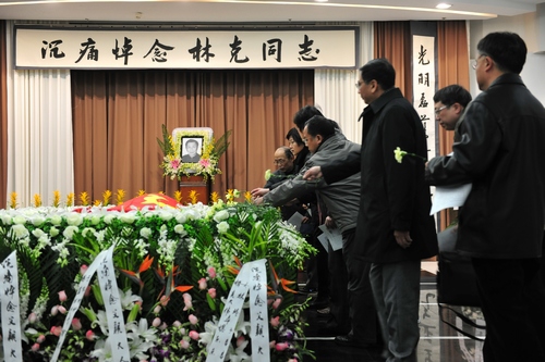 复旦大学党委书记朱之文、校长杨玉良,校党委副书记陈立民、王小林,林克同志的亲属、生前战友、好友、学生和各有关单位、部门的同志等逾300人,为林克同志送行。