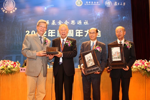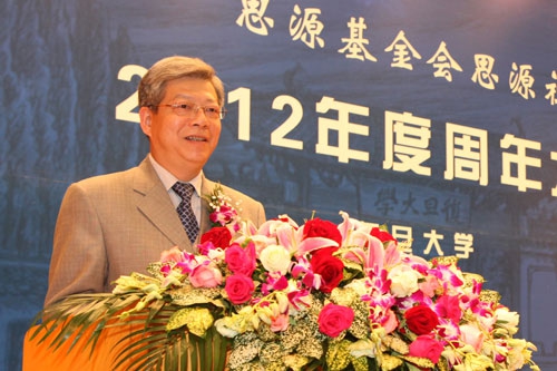 复旦大学校长杨玉良在典礼上致辞。他首先代表校方对其他与会的21所高校表示了欢迎,并欢迎复旦大学杰出校友的陈曾焘主席回到母校。杨校长提出,陈曾焘主席在个人事业取得辉煌成就的同时,为祖国教育与医疗卫生事业的发展做出了巨大贡献,很好地诠释了复旦“团结、服务、牺牲”的精神。而复旦大学一直以来都致力于培养主动“关注人类命运、关注社会发展、关注百姓疾苦”的优秀学生,这与思源基金会“饮水思源,取之社会,用之社会”的意旨是一致的。
