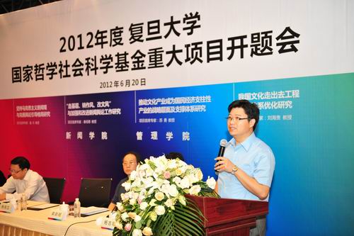 6月20日上午,复旦大学新闻学院、管理学院四项聚焦新闻舆论、文化产业领域的2012年国家哲学社会科学基金重大项目开题会同时在复旦大学隆重举行。