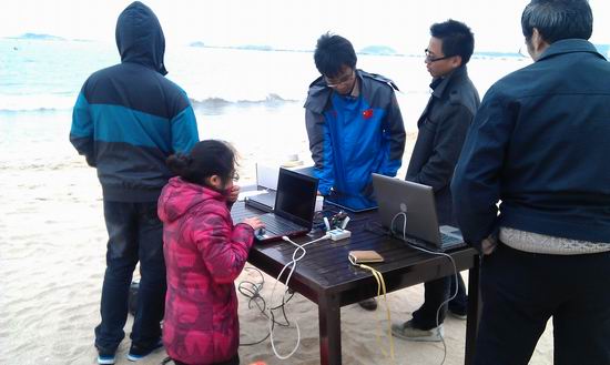 从2011年10月组建项目小组开始,复旦大学科研团队成员一直都没有放松手中的工作。在学校和院系领导的关心和支持下,科研团队的师生齐心协力,废寝忘食、日夜奋战,最终赶在2012年4月10前,如期向国家帆船帆板队交付了开发的两套系统。7月中旬起,科研团队的苏菲同学放弃暑假回家休息,一直驻留学校坚守岗位,随时与远在英国的国家帆船队技术保障团队保持联系,并通过互联网及时解决我们所提供的系统在现场使用中发现的问题。
