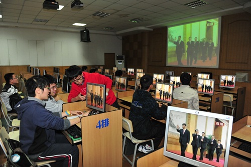 复旦学子通过电视或网络直播等方式密切关注新一届中央政治局常委同中外记者的见面会。多个院系组织了学生党员集体观看见面会盛况。除开放了校内网络直播外,各校区还开设了专门的视频会场,供师生收看。在一教多媒体教室,学生们下课后主动调适电脑,通过网络收看直播。