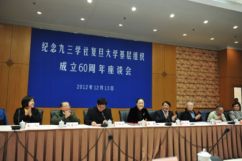 新闻中心讯 12月13日,我校在逸夫科技楼举行座谈会,纪念九三学社复旦大学基层组织成立60周年。九三学社中央副主席、上海市委主委、上海市副市长赵雯,中共复旦大学委员会书记朱之文出席会议并讲话。会议由九三学社中央常委、上海市委副主委、复旦大学委员会主委葛均波院士主持。