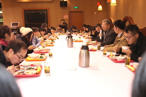 1月7日中午,校长杨玉良、校党委副书记陈立民冒着小雨与邯郸校区、江湾校区的家庭经济困难研究生代表共进午餐。校领导与学生代表们亲切畅谈,勾勒学校未来五年的规划。杨玉良还就学生们提出的问题进行了回应与解答。他表示,学生们目前反映的困难是暂时的,学校将陆续解决诸如科研场地有限、图书馆资源紧张、校区间交通等学生普遍反映的问题。他与同学们分享了他履职以来的感悟,指出复旦培养的学生应是对世界各种文化有所理解,有着宽容的心态,能与世界对话的人才。他鼓励学生努力进取,相信一定能创造辉煌。