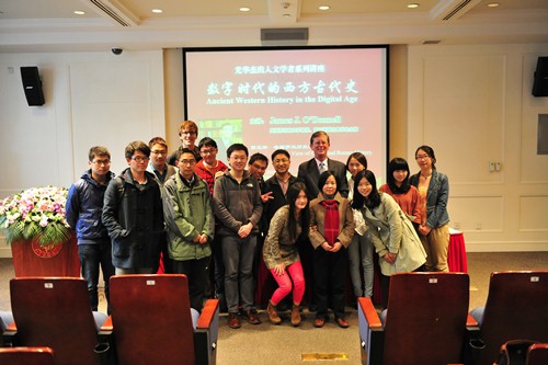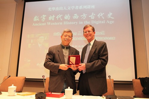 新闻中心讯 3月11日—19日,美国乔治敦大学古典学教授詹姆斯•奥唐奈 (James J. O’Donnell)在光华楼连开五场讲座,演讲主题为“数字时代的古代历史”。据悉,该活动属于我校人文振兴计划重要组成部分之一的光华杰出人文学者高端讲座系列。11日,校长杨玉良会见了奥唐奈教授,并为他的系列讲座致开幕辞。