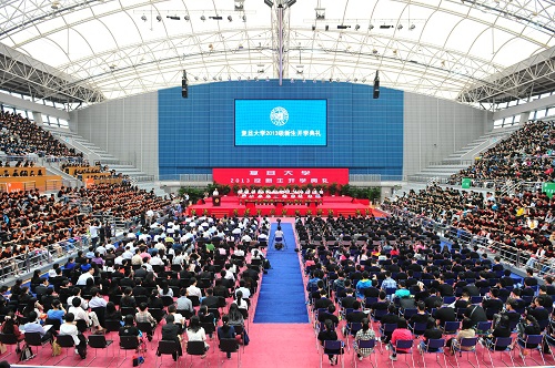 新闻中心讯 9月6日上午,复旦大学2013级本(专)科新生开学典礼在复旦大学正大体育馆隆重举行。来自世界各地的近3500名2013级中外新生参加了开学典礼。