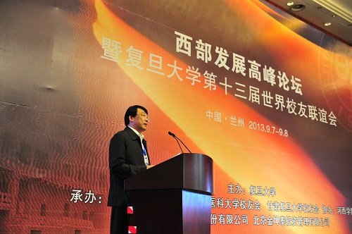 新闻中心讯 9月7日上午,由复旦大学主办,复旦大学校友会、上海医科大学校友会和复旦大学甘肃校友会联合承办的西部发展高峰论坛暨第十三届世界校友联谊会在兰州宁卧庄宾馆开幕。来自世界各地的近400位复旦大学校友汇聚兰州,与甘肃政、商、医、学、文各界人士一齐共话甘肃发展的美好蓝图,共同为建设“美好幸福新西部”,打造中国经济“升级版”出谋划策。