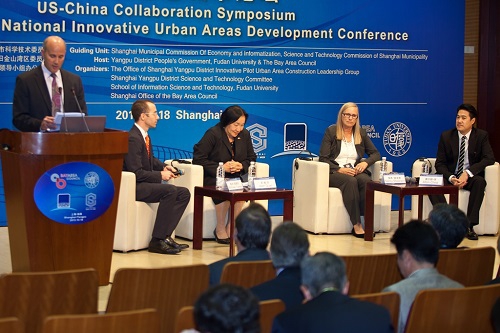 由杨浦区人民政府、复旦大学、美国旧金山湾区委员会三方共同主办,杨浦国家创新型试点城区建设领导小组办公室、杨浦区科学技术委员会、复旦大学信息科学与工程学院和美国旧金山湾区委员会上海代表处共同承办的2013杨浦国家创新型城区发展战略高层咨询会暨湾区智慧城市论坛于10月18日上午在复旦大学光华楼会议室隆重举行。复旦大学党委书记朱之文、中共杨浦区委书记陈寅、美国加州环境厅厅长马修•罗德里格斯先生、上海市科委副主任陈鸣波、上海市经信委副主任刘健在论坛开幕式上分别致辞。复旦大学常务副校长陈晓漫、海内外知名专家、学者和企业、高校代表300多人出席本次会议。