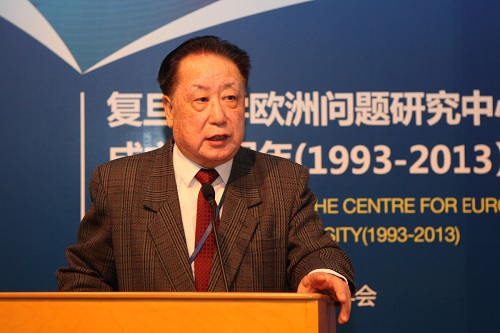 中国欧洲学会会长、中国社科院学部委员、中国社科院欧洲研究所所长周弘,中国前驻德国大使、复旦大学特聘教授梅兆荣,复旦大学副校长林尚立出席了年会开幕式暨复旦欧研中心20周年庆祝仪式并致辞。欧盟驻华大使艾德和也给年会召开和复旦欧洲研究中心成立20周年发来贺信。复旦大学经济学院院长袁志刚、复旦大学欧洲研究中心主任丁纯在仪式上致答谢词。