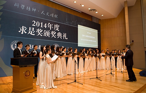 “求是杰出科学家奖”是基金会最重要的奖项,从1994年首次颁发起,在科教领域引起巨大反响,“求是杰出青年学者奖”是基金会的另一项具有重要影响力的奖项。本次颁奖典礼设在复旦大学,其主题“为科学而科学”体现了科学的信念,复旦大学秉持“博学而笃志,切问而近思”的校训,弘扬思想、学术上的独立精神。