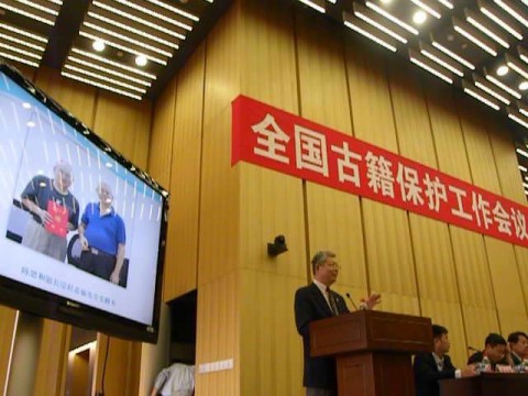 全国古籍保护工作会议10月11日在北京国家图书馆隆重召开,来自全国古籍保护工作部际联席会议成员单位代表、各省文化厅长、副省级以上公共图书馆馆长、古籍保护专家代表等近200人参加会议。复旦大学校长杨玉良院士、图书馆馆长陈思和教授、吴格研究馆员等出席会议。
