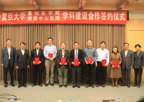 复旦大学党委书记朱之文,复旦大学副校长、上海医学院院长桂永浩,上海医学院副院长汪玲;中山医院院长樊嘉,副院长朱同玉、阎作勤、周俭;基础医学院院长汤其群、党委书记袁继鼎等,以及上海医学院办公室、上海医学院科研管理办公室、中山医院、基础医学院相关职能办公室负责人、中山医院科室主任、基础医学院系室主任等出席签约仪式。袁继鼎主持签约仪式。