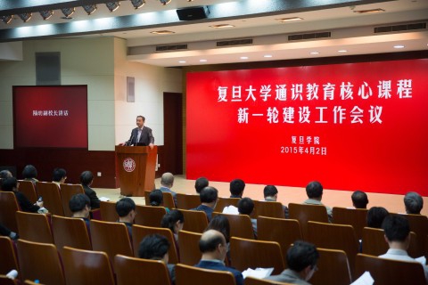 许宁生校长在致辞中谈到,人才培养,尤其是本科人才培养是大学的核心任务之一。复旦大学一直非常重视人才培养,这与教师对本科教学的热情与积极参与是分不开的。他代表学校向全体教师表示感谢。他谈到,复旦大学在通识教育、书院建设、小班教学等方面已取得好的成效,走在国内高校的前列。但是也必须看到,本科教育在内涵与模式的结合方面还有很大的创新和探索空间,应继续坚持好的做法并进一步加强内涵建设,重点推进在通识教育、书院和小班教学等方面的改革,形成复旦的特色。应注意通识教育与专业教育的平衡发展,在课程体系、课程内容、教学方法等方面持续创新改革,真正掌握小班教学等新教学模式的要义,在书院建设中充分汲取中华传统文化的精髓,形成有中国特色的书院文化。本次会议是本科教学创新改革的一个新起点,全校教师参与通识教育核心课程改革的热情尤为重要。在核心课程新一轮的改革中,希望各位老师能共同努力,在教学实践中积累经验、积极探索。许校长最后希望在十三五规划调研中,全体教师能谏言献策,提出未来五年规划中的本科教学新举措,共同促进本科教育质量的进一步提高。