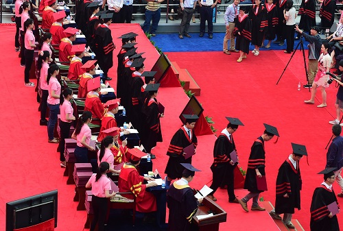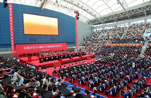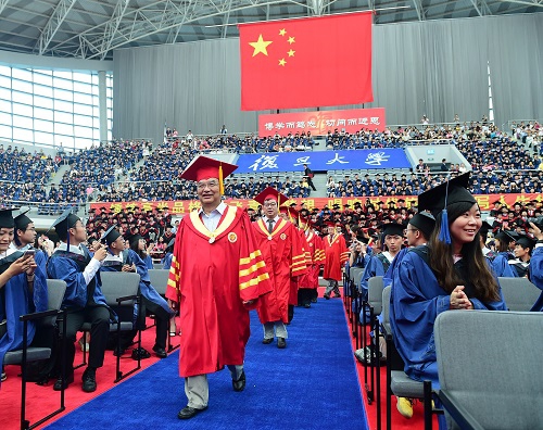 7月3日下午,复旦大学2015届研究生毕业典礼暨学位授予仪式在正大体育馆隆重举行。2015届全体毕业研究生,学校领导、校学位委员会委员、研究生导师代表、各院系党政领导、部分机关部处负责人、毕业生家属代表等近4000人出席典礼。