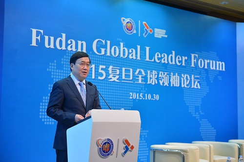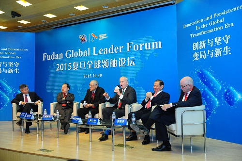时值复旦大学建校110周年、管理学院恢复建院30年,10月30日,2015“复旦全球领袖论坛”举行。复旦大学校长许宁生院士出席论坛并致辞。恒隆集团有限公司董事长陈启宗,原中投国际(香港)有限公司董事长、原香港中文大学校长刘遵义,启明创投创始人、主管合伙人加里•瑞斯彻,新加坡金鹰集团主席陈江和,硅谷银行荣休主席魏高思,在论坛上发表精彩演讲。复旦大学管理学院院长陆雄文教授主持了整场论坛。