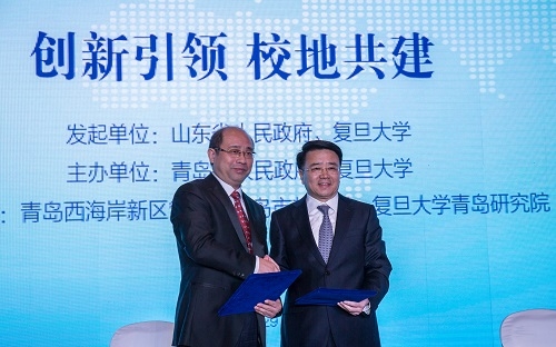 新闻中心讯 为了贯彻落实山东省人民政府和复旦大学签署的战略合作协议,率先实施山东省《关于深化科技体制改革加快创新发展的实施意见》,快速响应青岛市《关于深入推进科技创新发展的意见》,扎实推进复旦大学服务国家战略,9月29日,以“校地共建 创新引领”为主题的“2016(首届)复旦•青岛发展论坛暨复旦大学创新成果博览会”(以下简称“论坛”)在青岛西海岸新区举行。同日,复旦大学青岛研究院正式揭牌。