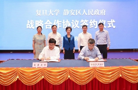7月5日上午,复旦大学与静安区人民政府在市北高新科技园区签署战略合作协议。复旦大学党委书记焦扬、校长许宁生、常务副校长桂永浩、党委副书记许征,静安区委书记安路生、区长陆晓栋、副区长周海鹰,以及区、校双方相关部门负责同志共同出席和见证签约仪式。