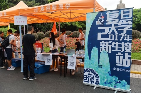 由复旦大学学生会组织的学生志愿者正前往上海各大火车站、地铁站迎接,新生还未踏进校门,就能在学长学姐们的帮助下感受到学校的热切欢迎。由学生会联合舆图社、校史协会等学生社团开发的校园导览小程序也在迎新周上线,只要在手机上“扫一扫”或者“搜一下”,就可看到新生所在邯郸校区的主要建筑介绍和路线指示。未来,其他校区导览还将予以完善。未来两个月,迎新晚会、新生杯系列体育赛事、公共艺术课堂等一系列由团委和学生会组织的缤纷文体活动也将陆续登场。
