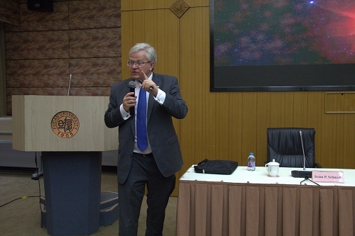 报告会上,布莱恩·施密特分享了其“通过观察遥远超新星发现宇宙加速膨胀”的科研历程及与两位同事共同获得2011诺贝尔物理学奖的经历,回顾了现代天体物理的发展进程,并介绍了目前在天体物理领域的主要研究方向。