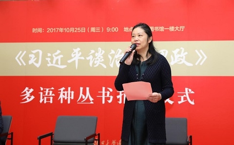 许征首先对北京崇学文化发展有限公司向复旦大学图书馆捐赠《习近平谈治国理政》八个语种丛书表示诚挚感谢。她表示,《习近平谈治国理政》一书多语种版的出版发行,对全面准确地阐释以习近平同志为核心的党中央治国理政方略,增进国际社会对中国发展理念、发展道路、内外政策的认识和理解,回应国际社会关切,具有重要意义。正值党的十九大胜利闭幕之际,相信丛书必将成为复旦师生学习好、研究好、宣传好习近平同志治国理政新理念、新思想、新战略的宝贵教材,同时也成为复旦各级党组织深入推进“两学一做”学习教育常态化、制度化的宝贵教材。