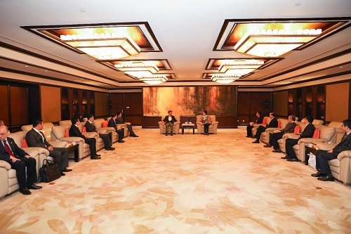 新闻中心讯 10月31日,校党委书记焦扬会见了中国华信能源有限公司董事会主席叶简明、总裁陈秋途一行。