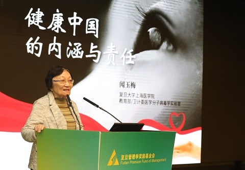 中国工程院院士、复旦大学基础医学院教授、教育部/卫生部医学分子病毒学开放实验室学术委员会主任、中国微生物学会名誉理事长闻玉梅以“健康中国的内涵与责任”为题,2017年“复旦管理学杰出贡献奖”获得者彭希哲以“应对人口老龄化的中国思考”为题,分别作主旨演讲。